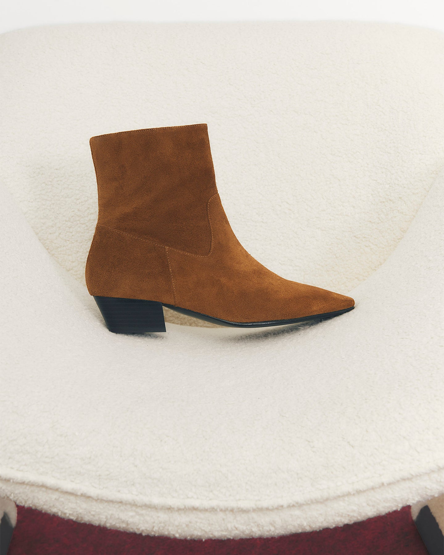 Deslumbra con un aire de libertad con el Botín Aurora, una pieza que combina la audacia del estilo western con la sofisticación de la artesanía, hecha a mano en España. Este botín es la elección definitiva para la mujer que busca un calzado con carácter, versatilidad y una silueta que no pasa desapercibida. Confeccionado en color mogano, que le otorga una textura suave y un profundo tono mogano. Su diseño de inspiración cowboy, con puntera afilada y un robusto tacón inclinado, estiliza la figura y garantiza un porte seguro. La suela de caucho flexible asegura una pisada suave y adaptable