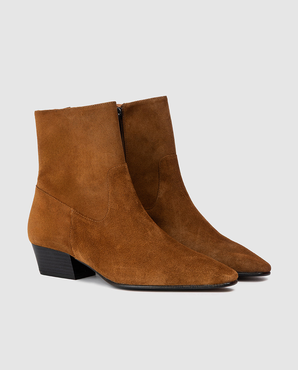Deslumbra con un aire de libertad con el Botín Aurora, una pieza que combina la audacia del estilo western con la sofisticación de la artesanía, hecha a mano en España. Este botín es la elección definitiva para la mujer que busca un calzado con carácter, versatilidad y una silueta que no pasa desapercibida. Confeccionado en color mogano, que le otorga una textura suave y un profundo tono mogano. Su diseño de inspiración cowboy, con puntera afilada y un robusto tacón inclinado, estiliza la figura y garantiza un porte seguro. La suela de caucho flexible asegura una pisada suave y adaptable