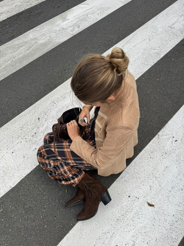 El Botín Saga es una pieza que fusiona la artesanía tradicional con un estilo audaz y bohemio. Este botín es la elección ideal para la mujer que busca un calzado que combine la elegancia atemporal con un toque de personalidad indomable. Confeccionado en piel serraje color chocolate, un tono marrón intenso y cálido que añade profundidad a cualquier look. Su diseño de puntera afilada y tacón bloque de 5,5 cm ofrece la altura perfecta para estilizar la figura sin renunciar al confort. El detalle de flecos en el lateral aporta un movimiento único y un aire western chic. Hecho a mano en España.