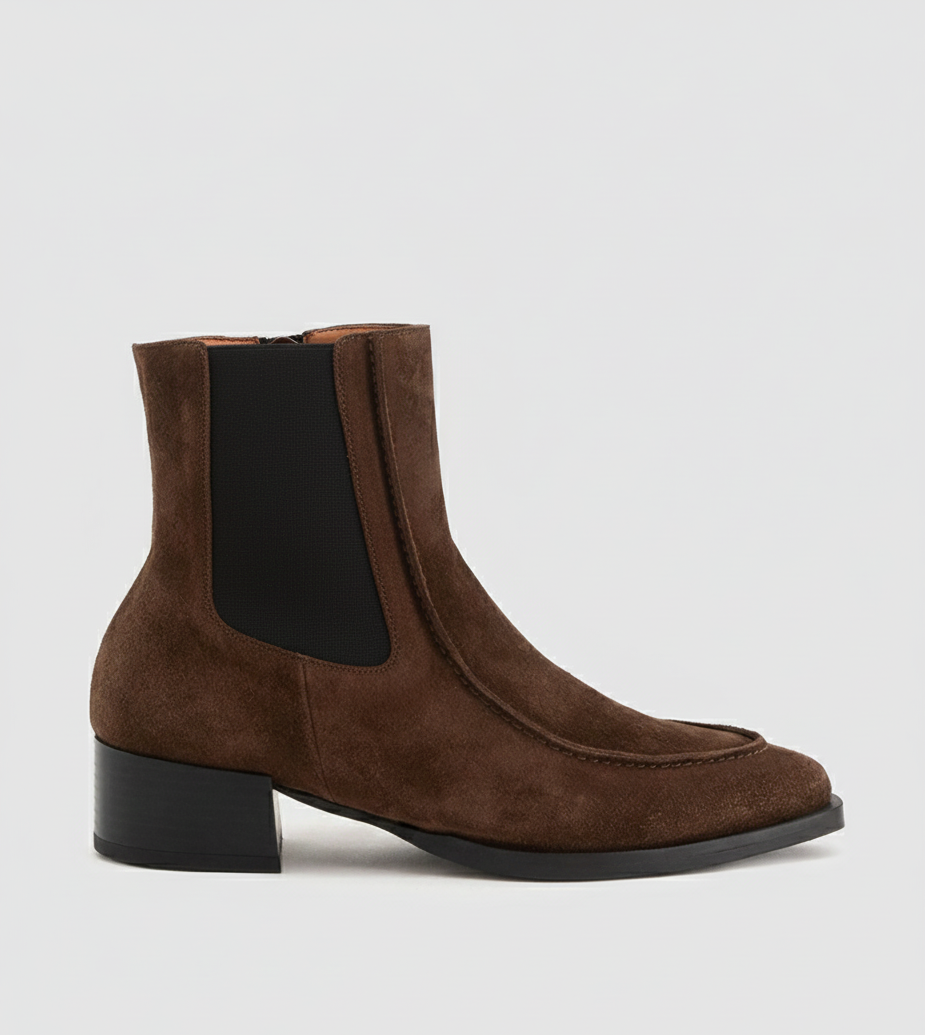 El Botín Gala es un básico de armario imprescindible que aúna confort y estilo atemporal. Esta bota es la elección ideal para la mujer que busca un calzado versátil que combine la elegancia clásica con un toque de modernidad. Confeccionado en piel serraje en color chocolate. Su diseño de inspiración Chelsea, con elásticos laterales y una silueta limpia, lo convierte en una pieza perfecta para cualquier ocasión. El tacón bloque de 3,5 cm ofrece una altura cómoda y una gran estabilidad, ideal para el uso diario sin sacrificar el estilo.
