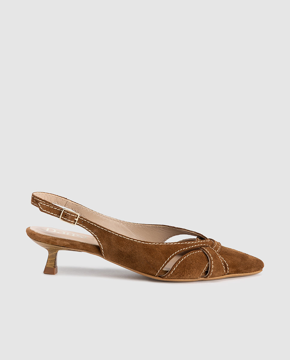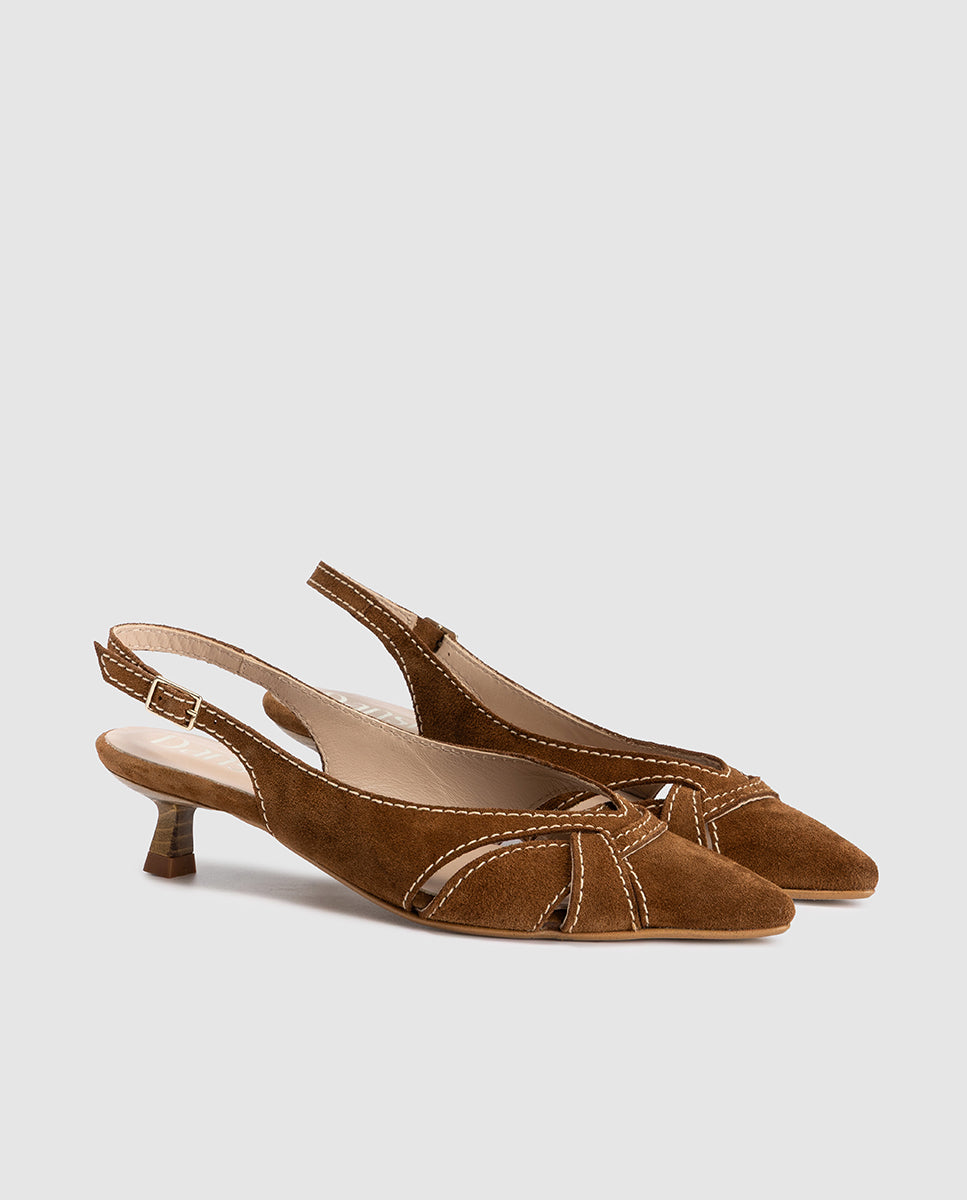 Zapatos destalonados de tacón bajo en serraje